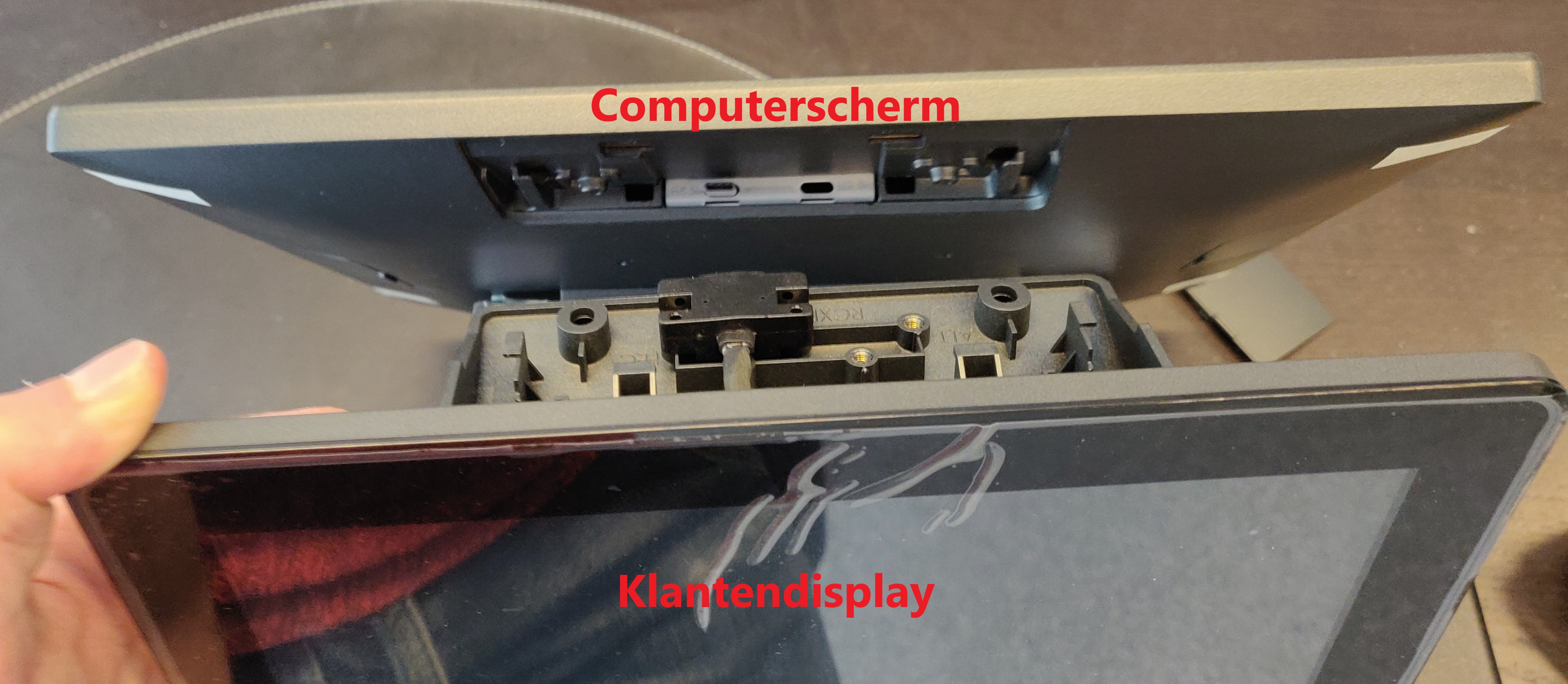3. Zet het klantendisplay vast met de schroeven die meegeleverd zijn. Deze gaten kan je onder het klantendisplay vinden.
