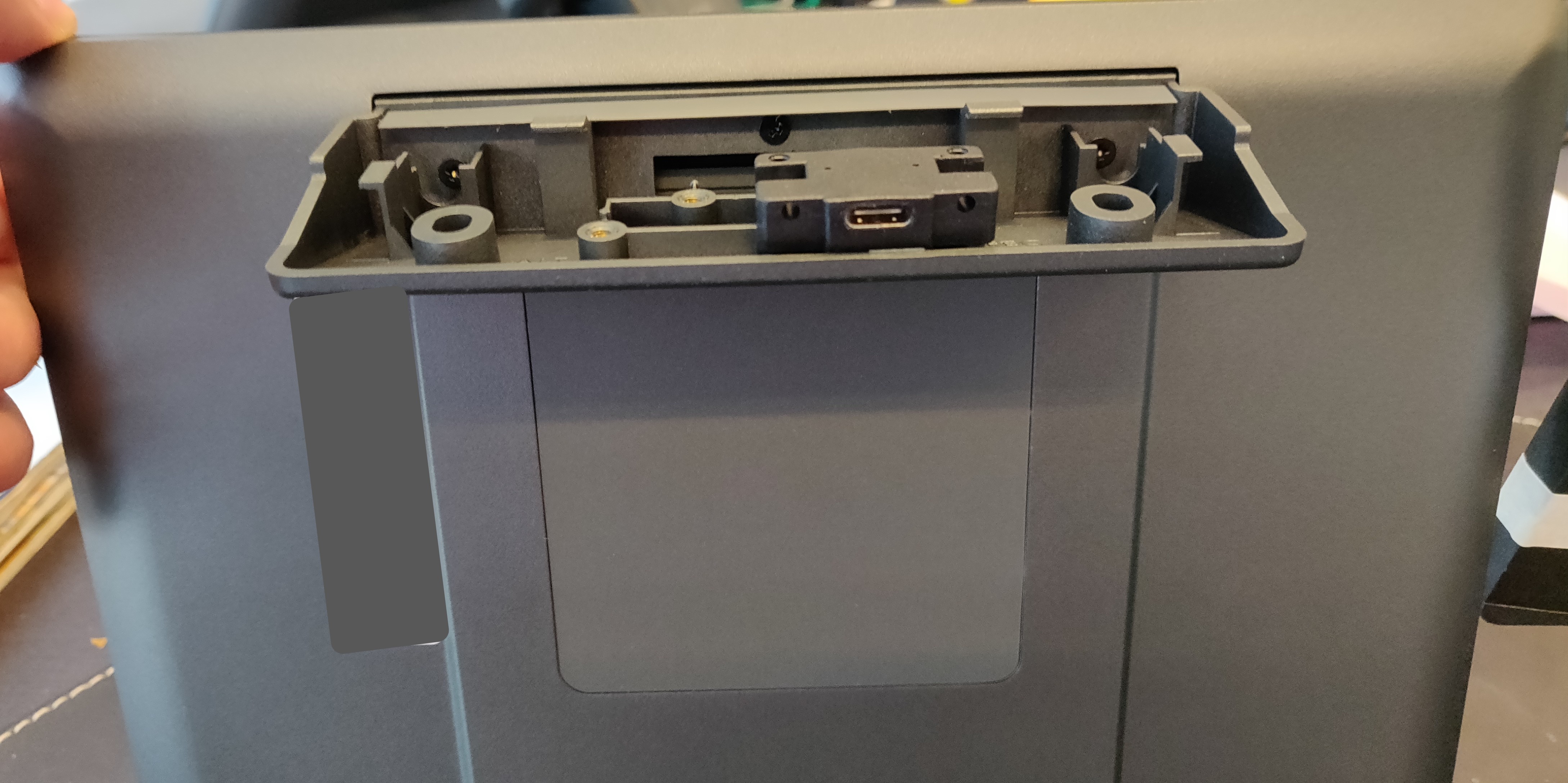 2. Pak het klantendisplay uit de doos en sluit deze aan op de plek waar je het klepje hebt afgehaald.